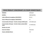 | Classe d’efficacité énergétique cavité entière | A+ |